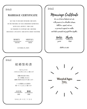 ご注文に際しては、お好みのフォントをお選びいただくことができます。また、刻印する文章は、おひとりおひとりのご希望に合わせてカスタマイズが可能です。